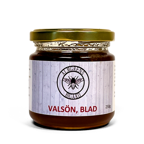 Fantastiskt smakrik bladhonung från Valsön i Uppland. Färgen är mörk, konsistensen seg och smaken har har toner av torkad frukt och tall. Bladhonung upplevs som något mindre söt än annan honung.