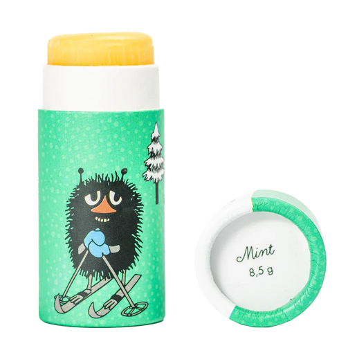 Ekologiskt cerat från Gustaf & Linnea, med svenskt bivax och smak av mint. Ekologiskt och i miljövänlig papphylsa med Muminmotiv. Extra tjockt stift som lätt kan användas inte bara på läpparna utan även på tex torra händer.