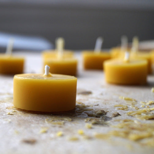 Värmeljus av svenskt bivax, med underbar djupgul färg. Handstöpta på traditionellt vis. Brinner länge med klar och vacker låga utan att sota. Ljusen själva avger en frisk och söt honungsdoft.