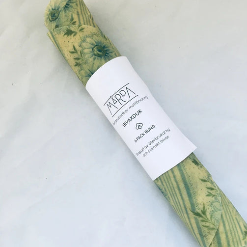 Mårda tillverkar bivaxdukar och bivaxpåsar som används istället för plast. Du kan använda dem till att slå in frukt och grönt eller matrester, till att förvara bröd och ost i eller för matsäcken när du ska på utflykt. Värmen från dina händer gör duken lätt att forma och sluta runt det du vill förpacka.