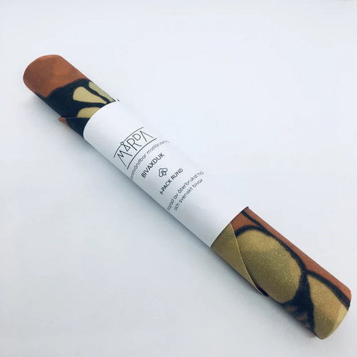 Mårdas produkter är handgjorda i Sverige av återvunna tyger och svenskt bivax.