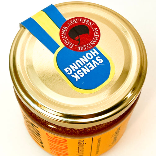 Den här produkten är märkt Eldrimner Certifierat Mathantverk©, vilket bland annat garanterar att honungen har ett tydligt ursprung och inte är blandad från flera olika bigårdar. Läs mer om märkningen på Eldrimners hemsida.