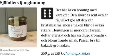 Honungsrikets produkter fick idel fina betyg när Svenska dagbladet testade tio honungssorter!