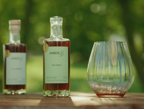 Exklusiv honungsvinäger från Amber Honey. Rå äppelcidervinäger och svensk honung. Inget annat!